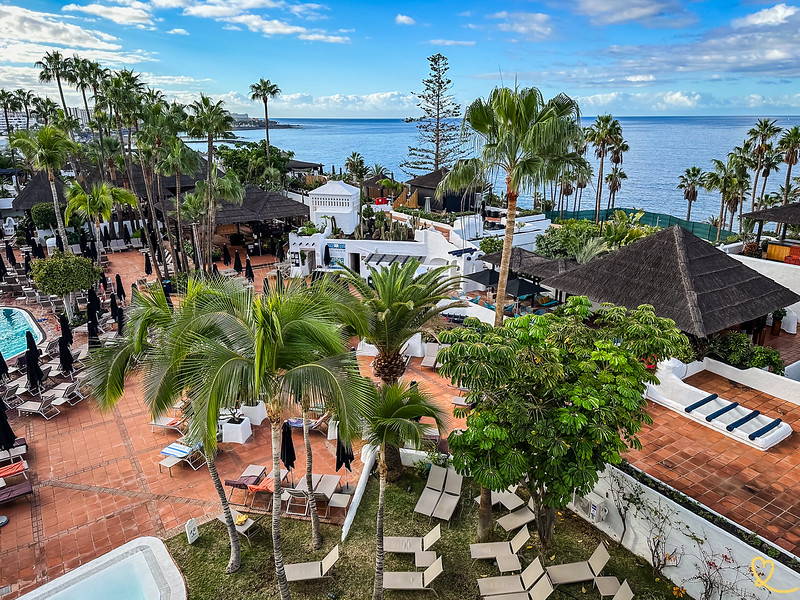 Located just north of Playa de Fañabé, this luxury hotel charmed us with its tranquility and location. In fact, it’s one of our picks for the best resorts in Costa Adeje! Ideal for relaxation, it boasts 2 superb outdoor pools, one with a small waterfall, as well as private access to the beach.